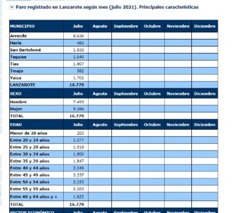 Por municipios, Arrecife acababa julio con 8.636 desempleados frente a los 9.851 de junio, lo que supone 1.215 menos. En Haría se ha pasado de los 524 de junio a  483, 41 parados menos. En el caso de San Bartolomé el paro se ha reducido en 219 personas, pasando de los 2.049  de junio a los 1.830 de julio.