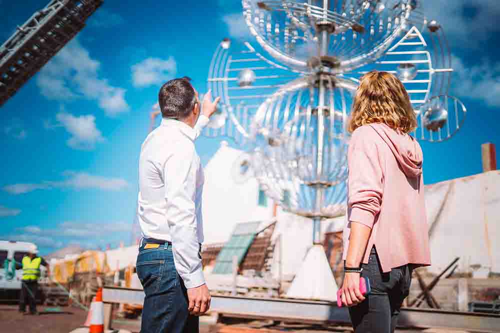 El Juguete del Viento ‘Fobos’, la escultura del genial artista lanzaroteño César Manrique se instalará la próxima semana, previsiblemente, el jueves 12 de marzo, en la rotonda de Tahiche, tras culminar los trabajos de construcción de la réplica de esta obra y que se iniciaron hace ya varios años.