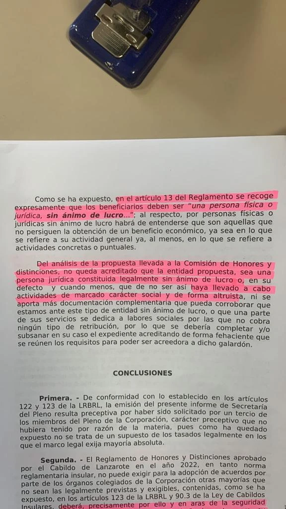 Tal y como es sabido, el Cabildo de Lanzarote se vio obligado a suspender un pleno en el que se iba a aprobar a todos los galardonados por la Comisión de Honores y Distinciones, entre ellos, Radio Lanzarote, ante la posible irregularidad en el nombramiento de la emisora lanzaroteña en el apartado de labor social, expresamente destinada, según refleja el mencionado informe, para entidades sin ánimo de lucro de manera exclusiva.