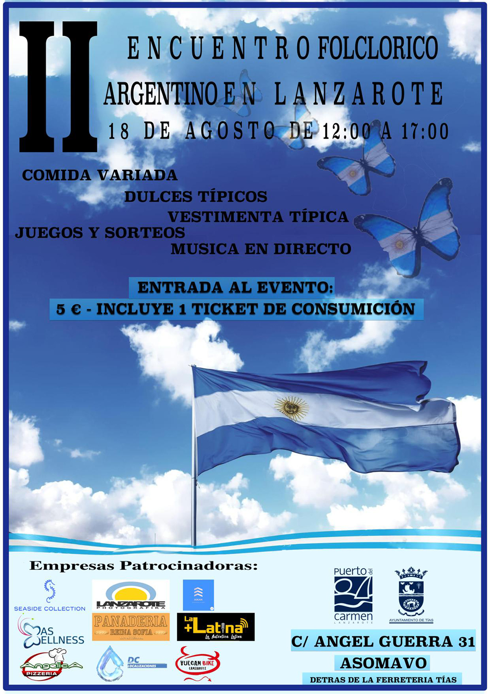 El Ayuntamiento de Tías colabora en el II Encuentro Folclórico Argentina en Lanzarote que tendrá lugar el próximo domingo, 18 de agosto, de 12 a 17 horas, en la sede de la Asociación de Mayores y Voluntariado del Municipio de Tías (Asomavo).